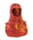 Our flame-inspired fire hood features an orange, red, and yellow tie-dye design. It is made of a Nomex Blend material and has a long notch shoulder bib.